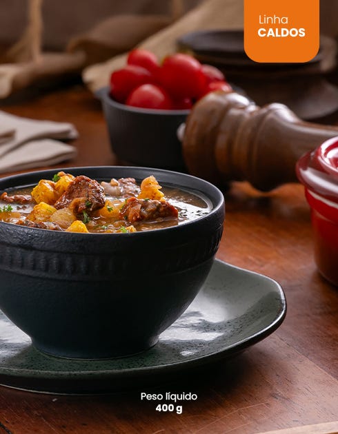 Caldo de costela bovina macia com mandioca cremosa, temperada com ingredientes selecionados que trazem aquele toque de sabor caseiro. O equilíbrio entre proteínas e carboidratos para quem busca nutrição sem abrir mão do sabor.